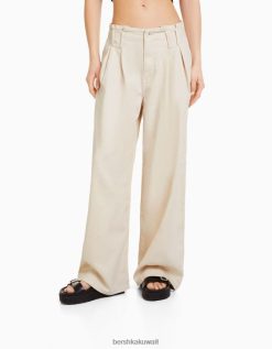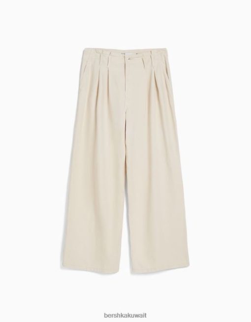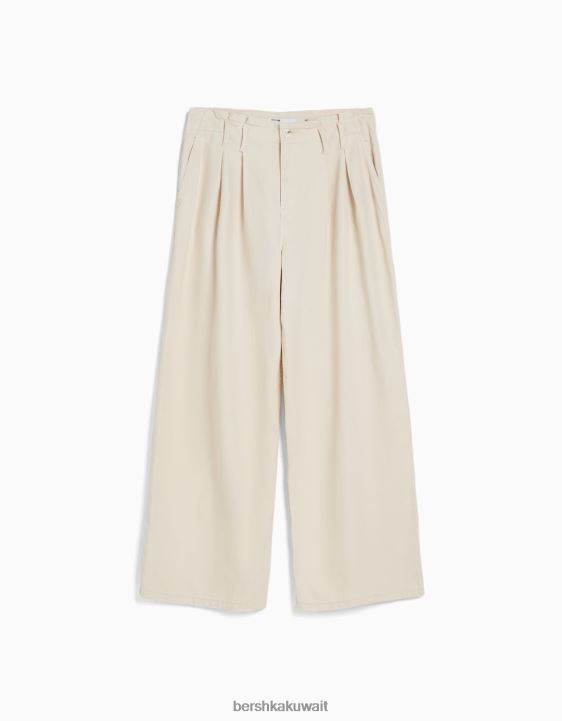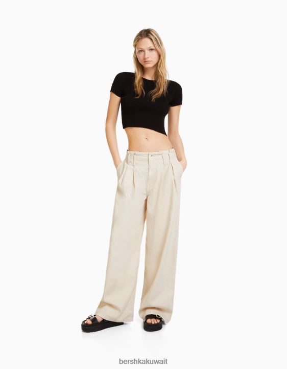Bershka نحيف جينز واسع الساق بكسرات كريم 804X1537 ملابس