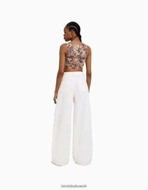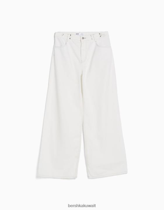 Bershka نحيف جينز واسع الساق مع خصر قابل للتعديل أبيض 804X1564 ملابس