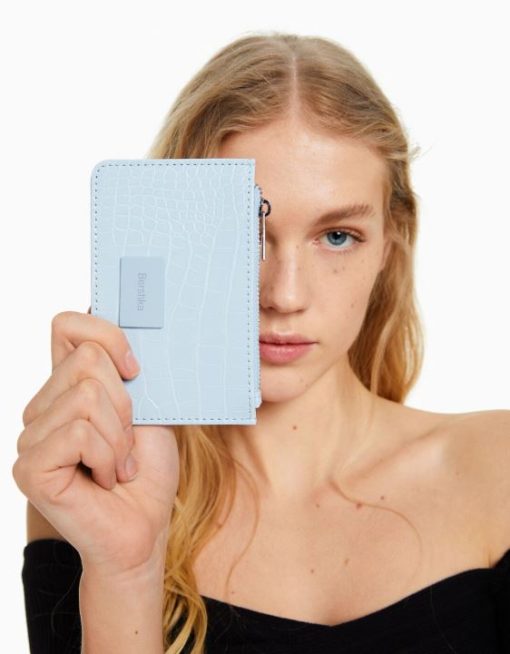Bershka نحيف حامل بطاقات بطبعة حيوان مع لوحة منقوشة أزرق فاتح 804X2377 مُكَمِّلات