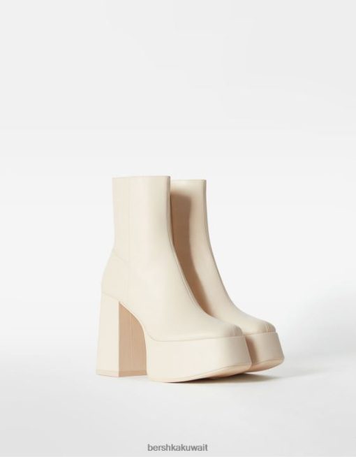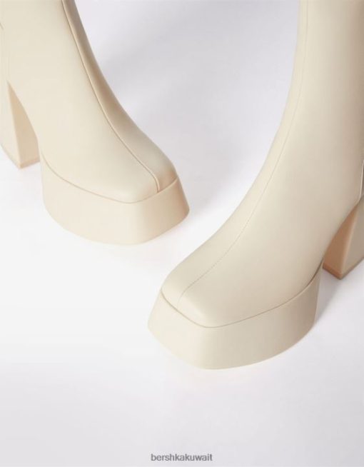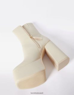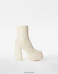 Bershka نحيف حذاء بوت بطول الكاحل بكعب عالٍ منصة xl بيج فاتح 804X2298 الأحذية