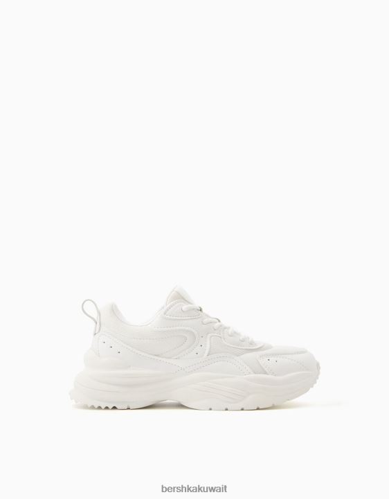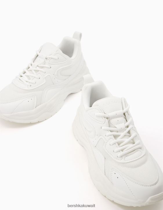 Bershka نحيف حذاء رياضي متباين بتفاصيل شبكية أبيض 804X2046 الأحذية