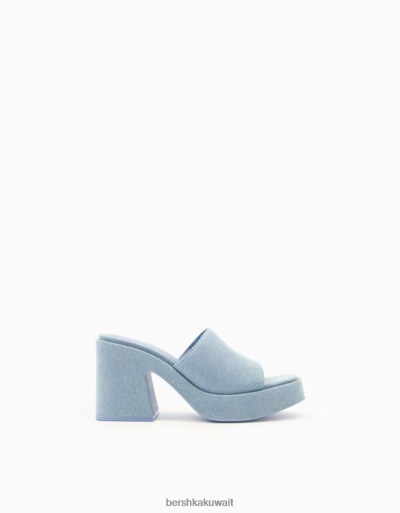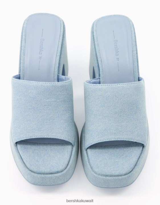 Bershka نحيف حذاء مفتوح بكعب من قماش الدنيم مغسول باللون الأزرق 804X2178 الأحذية