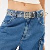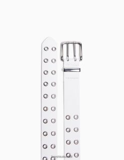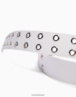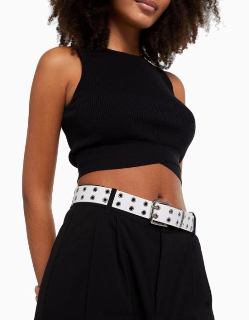 Bershka نحيف حزام جلد صناعي مع ثقوب أبيض 804X2547 مُكَمِّلات