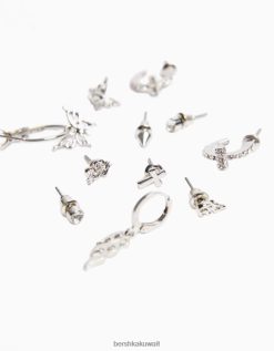 Bershka نحيف حزمة من 9 أقراط فضة 804X2516 مُكَمِّلات