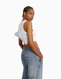 Bershka نحيف حقيبة حجر الراين مع مقبض فضة 804X1824 مُكَمِّلات