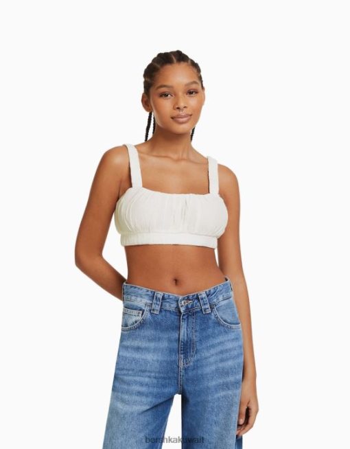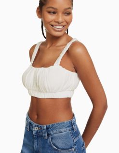 Bershka نحيف حمالة صدر كريب بحمالات رفيعة كريم 804X1919 ملابس