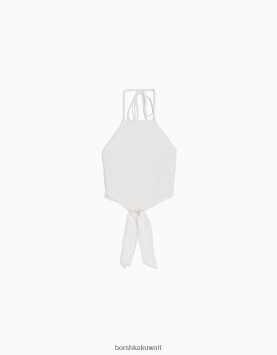 Bershka نحيف رسن علوي مع تفاصيل ربطة عنق ومطاط مزين كريم 804X889 ملابس