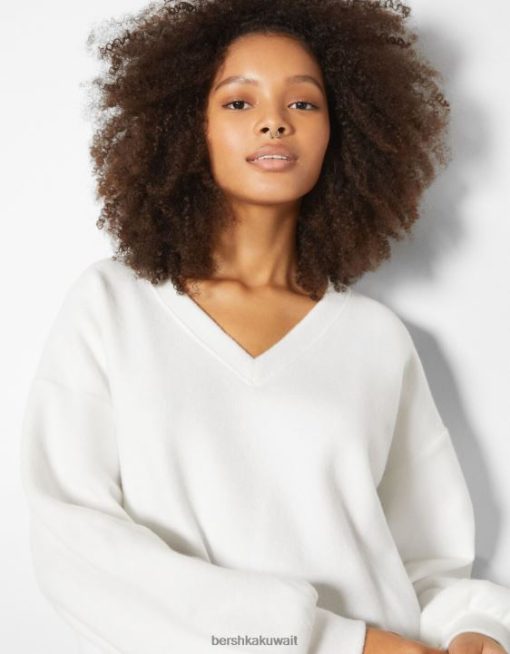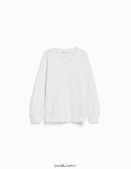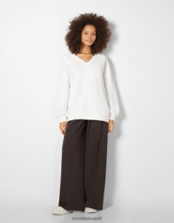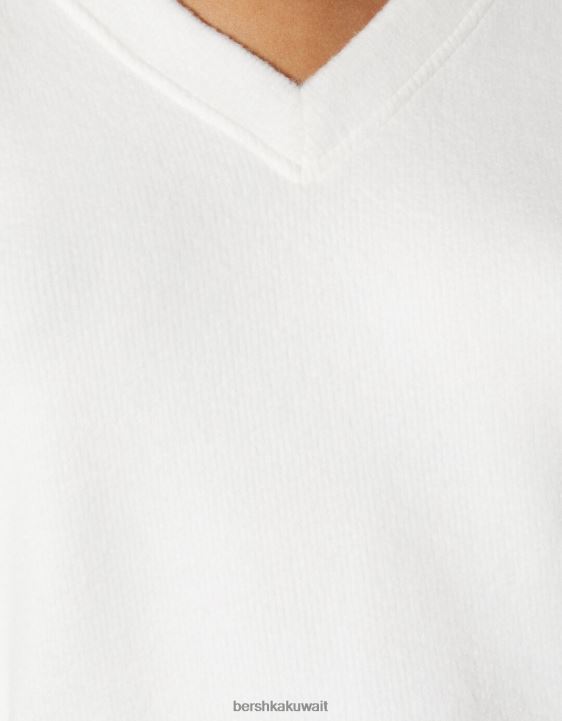 Bershka نحيف سترة الخامس الرقبة أبيض 804X1003 ملابس