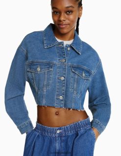 Bershka نحيف سترة الدنيم اقتصاص أزرق 804X2021 ملابس