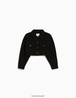Bershka نحيف سترة الدنيم اقتصاص أسود 804X1104 ملابس