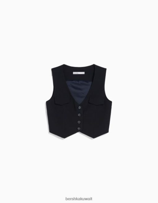 Bershka نحيف سترة بأزرار مفصلة أزرق غامق 804X1187 ملابس