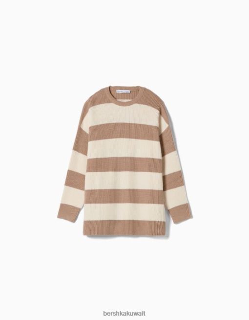 Bershka نحيف سترة طاقم الرقبة مع خطوط رمل 804X1093 ملابس