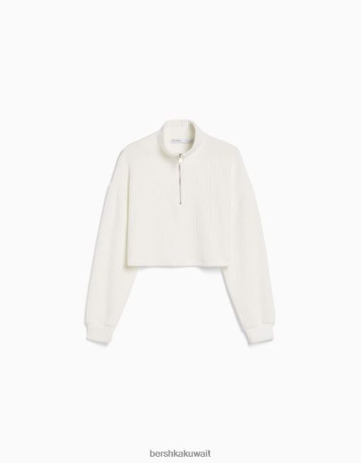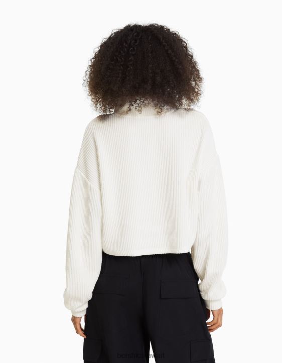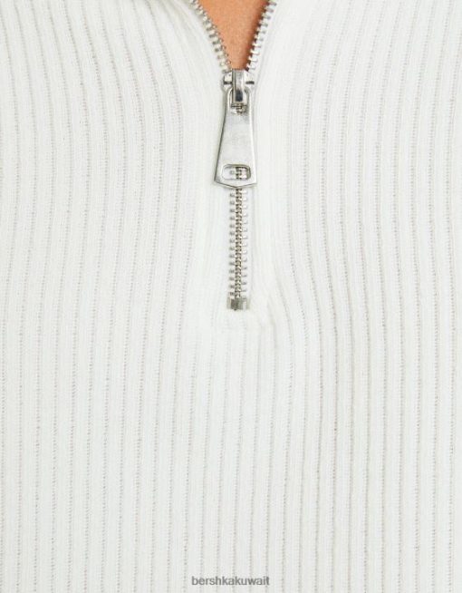 Bershka نحيف سترة عالية الرقبة متماسكة مع سحاب كريم 804X1045 ملابس