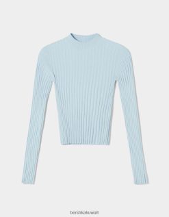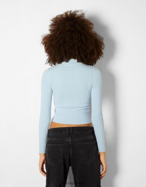 Bershka نحيف سترة عالية الرقبة مضلعة أزرق فاتح 804X1024 ملابس