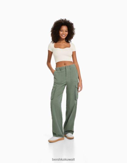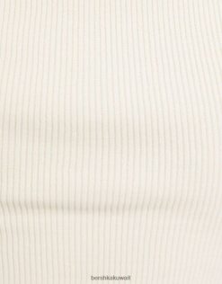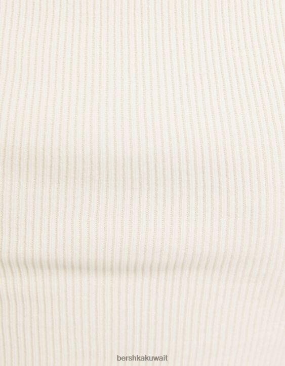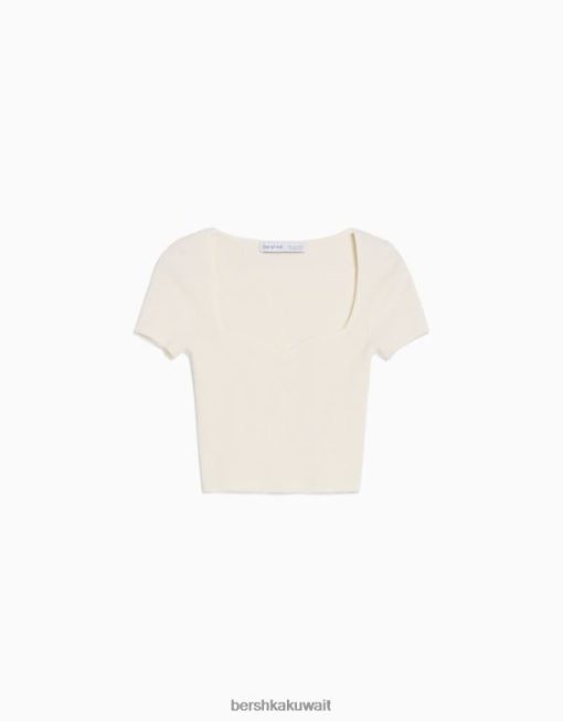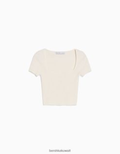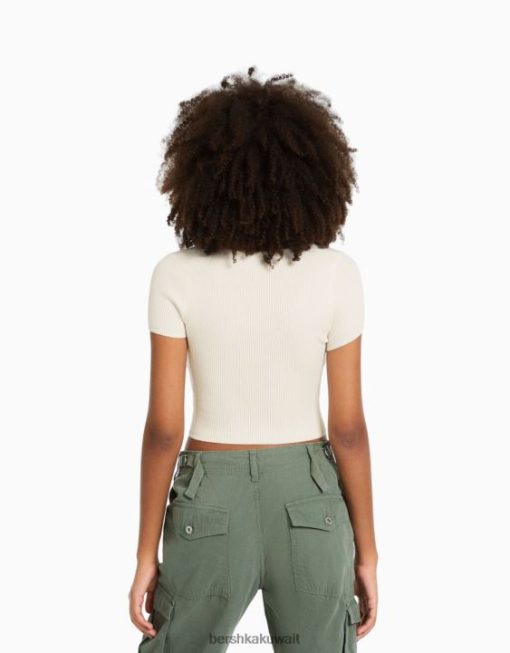 Bershka نحيف سترة قصيرة الأكمام متماسكة مع خط العنق حبيبته كريم 804X994 ملابس