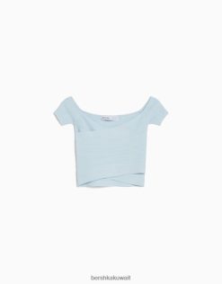 Bershka نحيف سترة قصيرة الأكمام مع تفاصيل كروس أزرق فاتح 804X867 ملابس