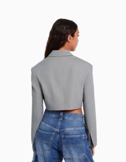 Bershka نحيف سترة قصيرة رمادي 804X1199 ملابس
