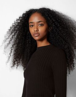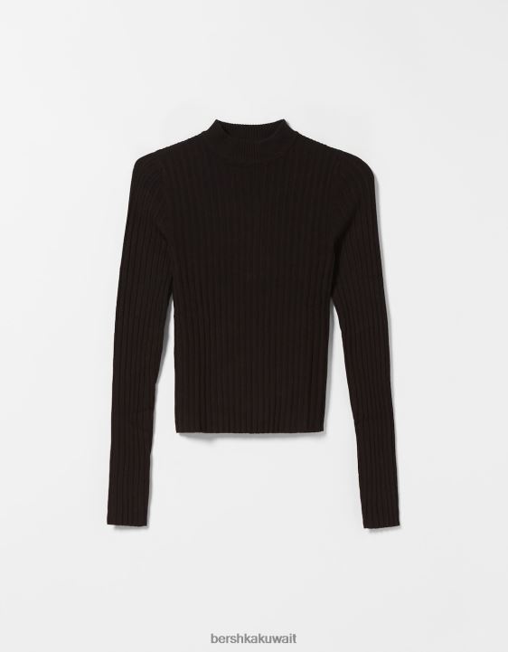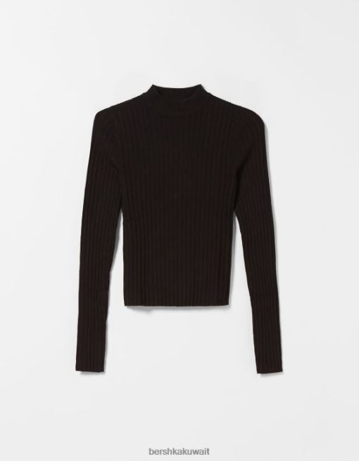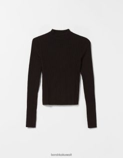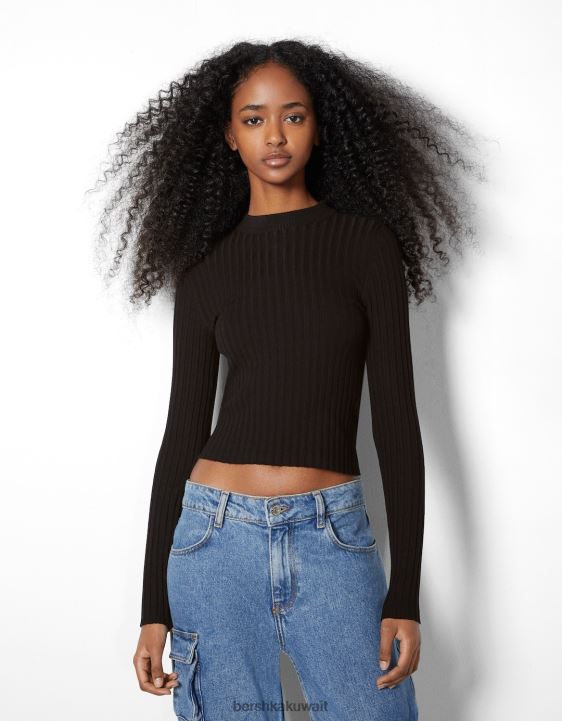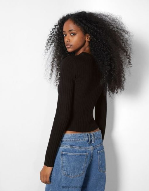 Bershka نحيف سترة مضلعة وهمية الرقبة أسود 804X1021 ملابس