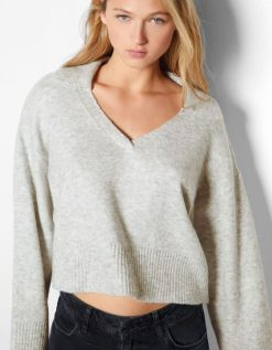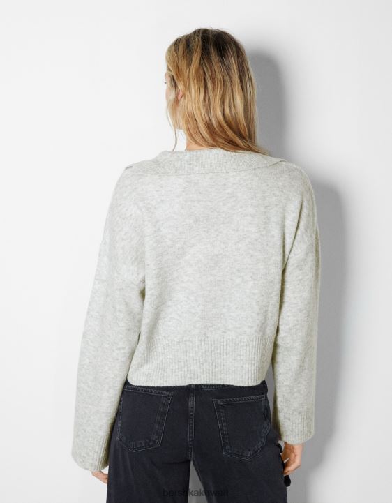Bershka نحيف سترة مع طوق بولو رمادي 804X1029 ملابس