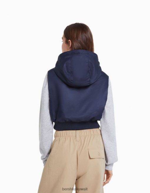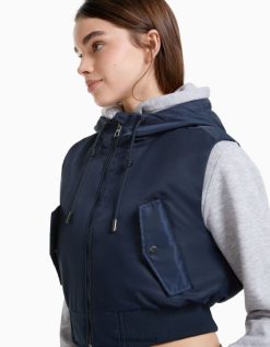 Bershka نحيف سترة منفوخة مقصوصة مع غطاء محرك السيارة القوات البحرية 804X1171 ملابس