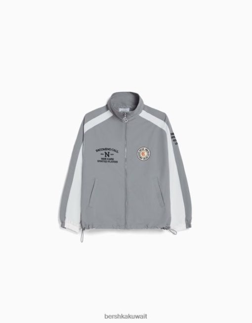 Bershka نحيف سترة نايلون مع خطوط متباينة رمادي 804X1166 ملابس