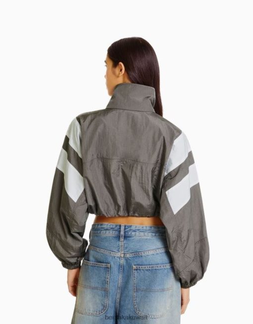 Bershka نحيف سترة نايلون ملونة رمادي 804X1110 ملابس