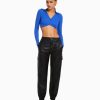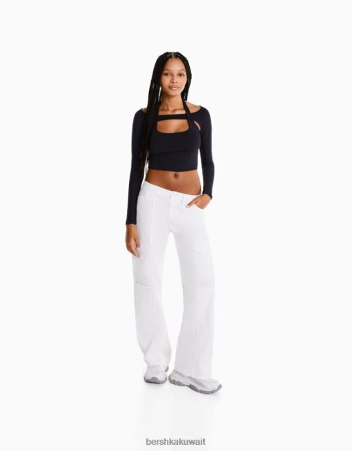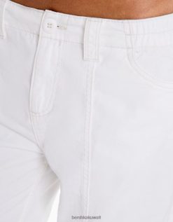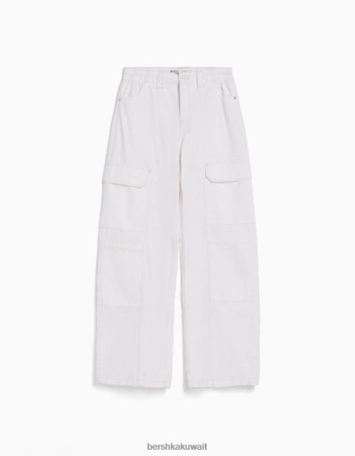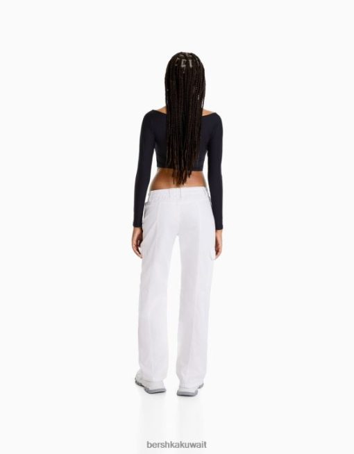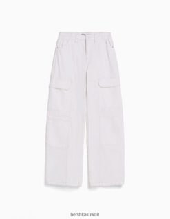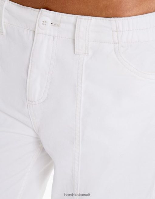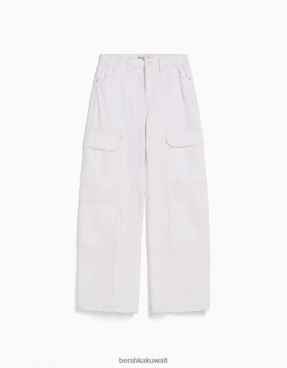 Bershka نحيف سروال كارغو قطني منخفض الخصر بخيوط متباينة من البيض 804X1363 ملابس