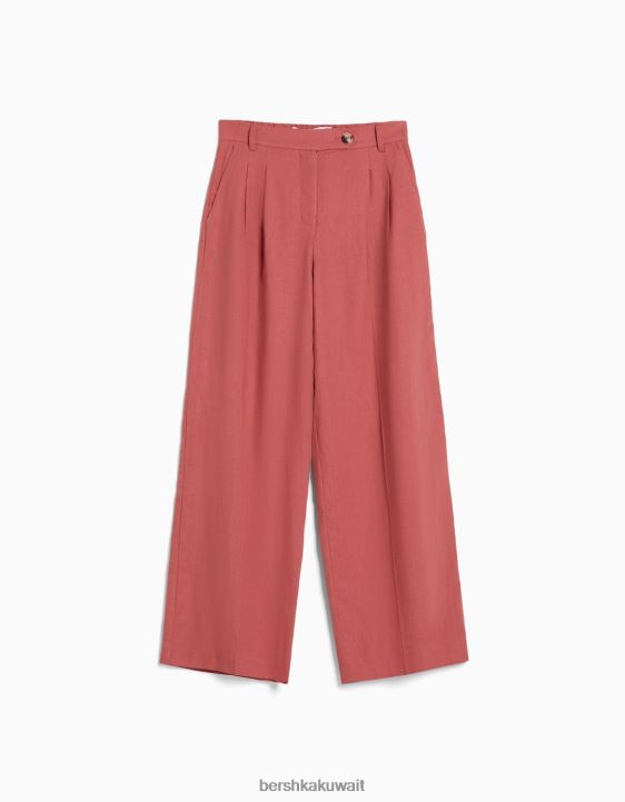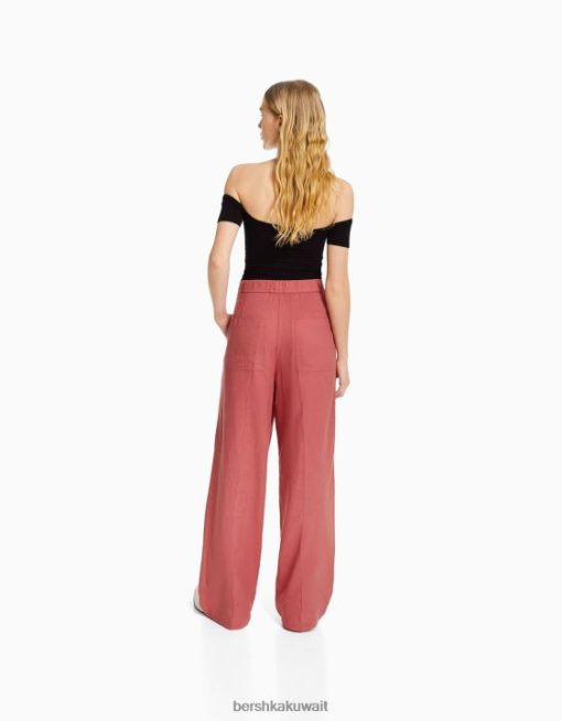 Bershka نحيف سروال كتان واسع الساق مع حزام مطاطي المرجان 804X1437 ملابس