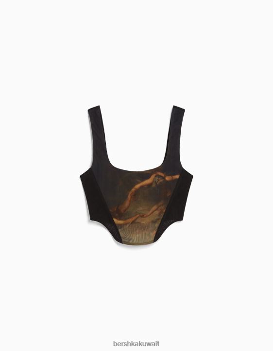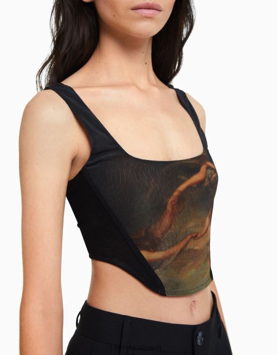Bershka نحيف سلسلة فنية مشد تول بطبعة أسود 804X720 ملابس