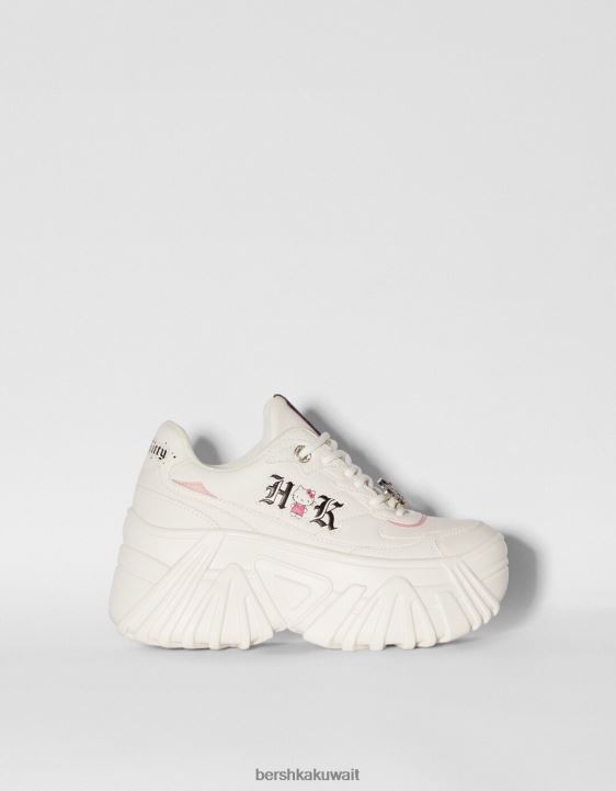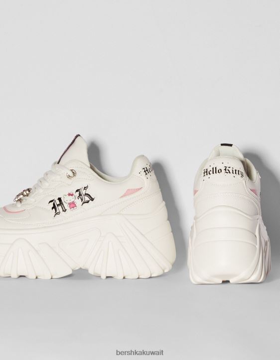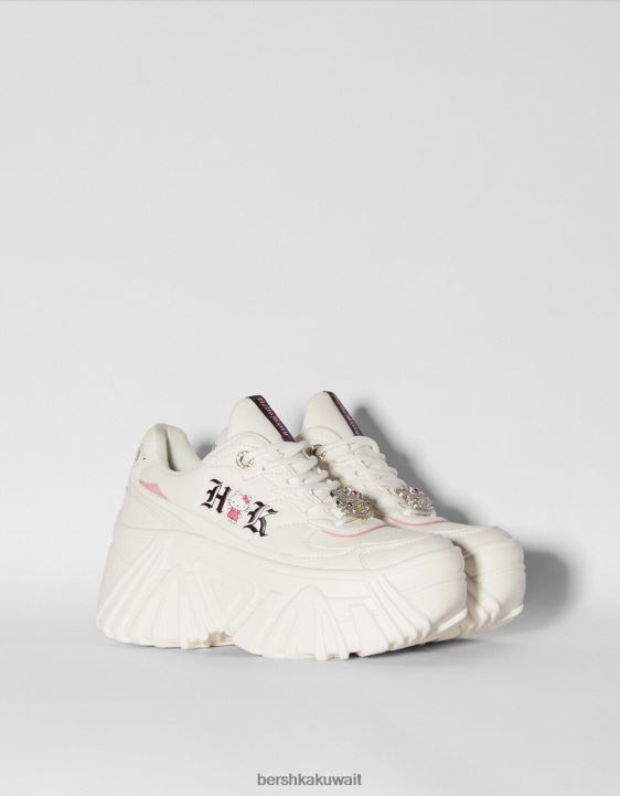 Bershka نحيف سنيكرز هيلو كيتي بنعل سميك بتفاصيل حجر الراين أبيض 804X2063 الأحذية
