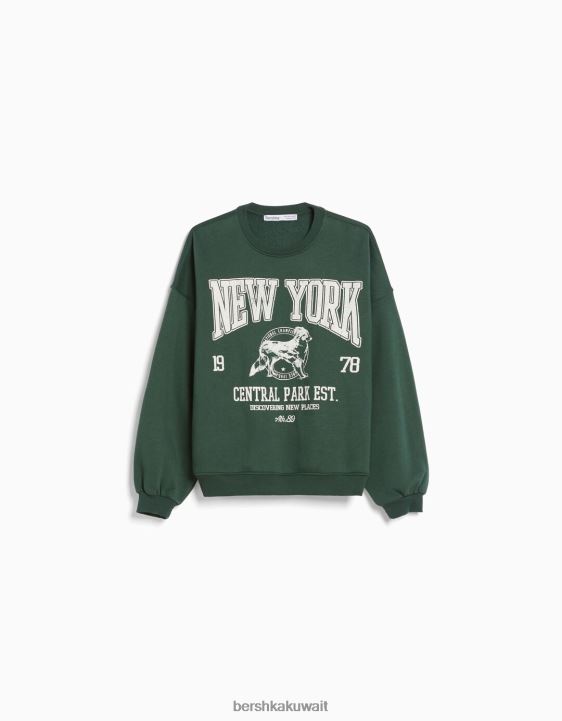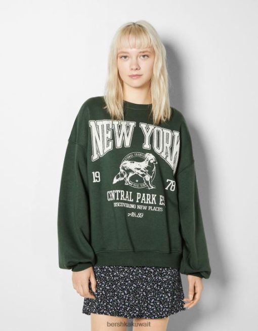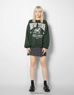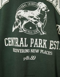 Bershka نحيف سويت شيرت مطبوع كبير الحجم أخضر 804X1232 ملابس