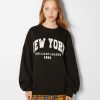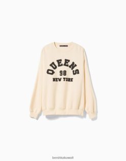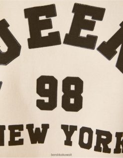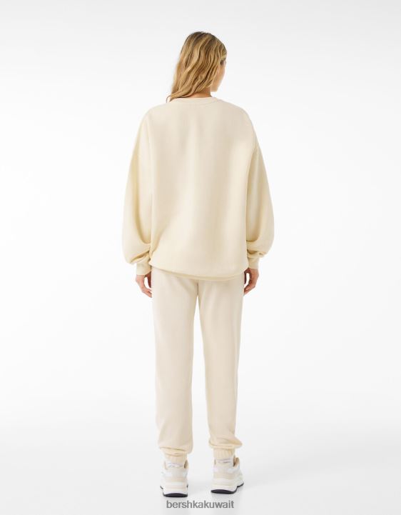 Bershka نحيف سويت شيرت مطبوع كبير الحجم اللون البيج 804X1246 ملابس