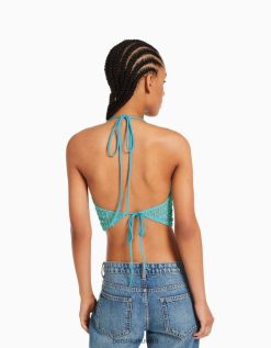 Bershka نحيف شبكة مطبوعة أعلى محصول باندو الفيروز 804X894 ملابس