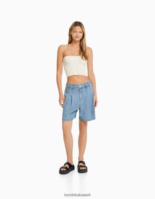 Bershka نحيف شورت برمودا من الدنيم أزرق فاتح 804X1681 ملابس