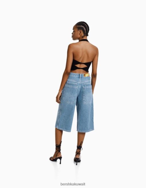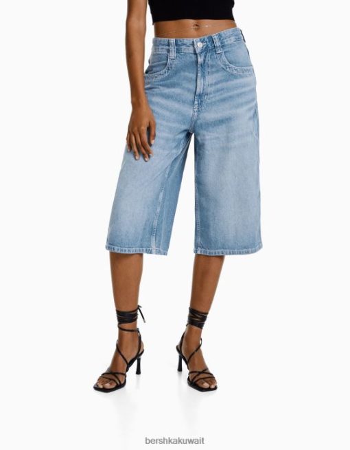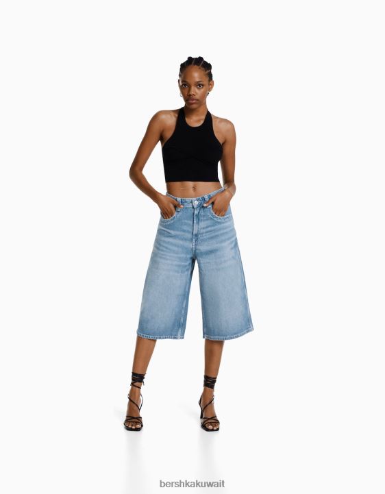Bershka نحيف شورت برمودا من الدنيم الفضفاض للغاية من التسعينيات أزرق فاتح 804X1976 ملابس