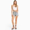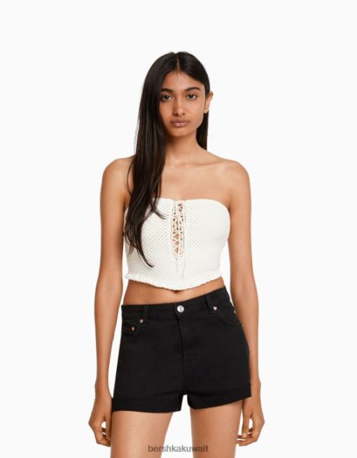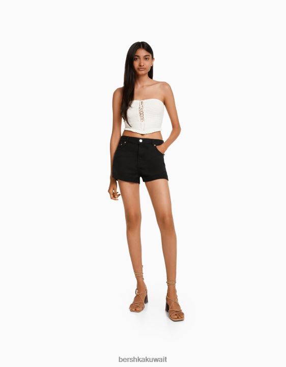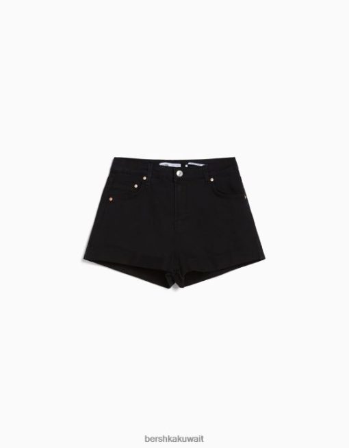 Bershka نحيف شورت تويل مريح مع حواف مطوية أسود 804X1695 ملابس