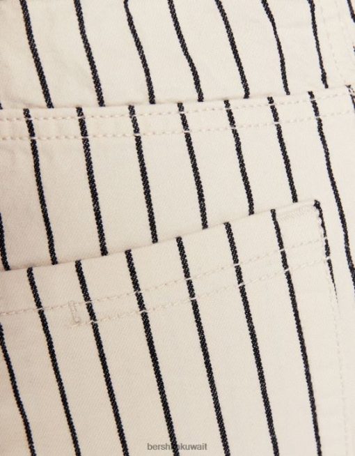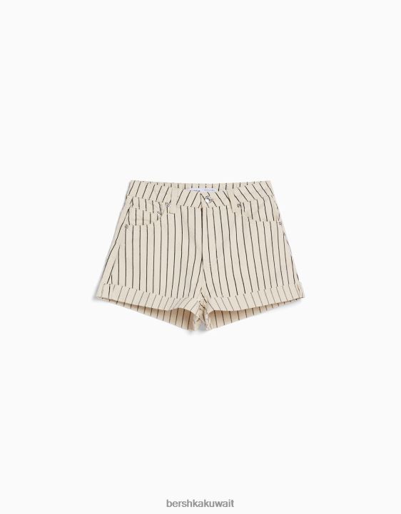 Bershka نحيف شورت تويل مريح مع حواف مطوية كريم 804X1698 ملابس