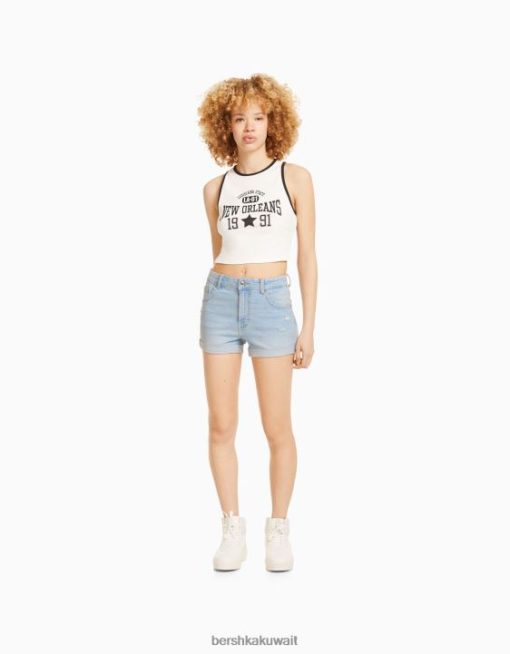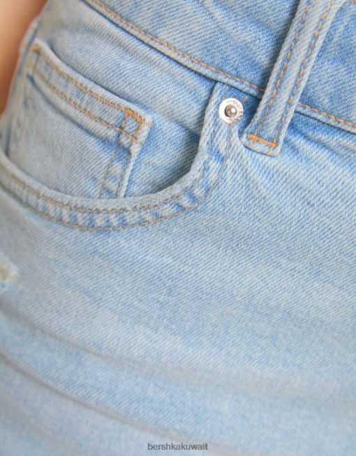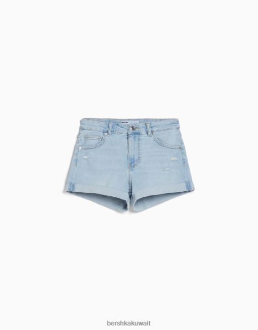Bershka نحيف شورت جينز مطوي أزرق فاتح 804X1726 ملابس