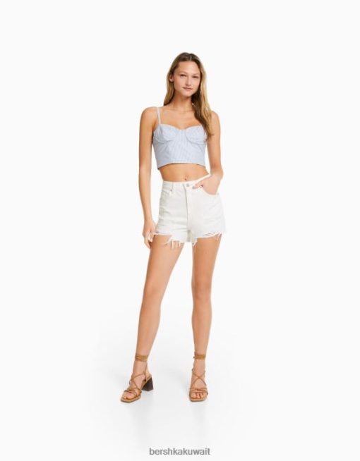 Bershka نحيف شورت جينز ممزق مع جيوب أبيض 804X1936 ملابس