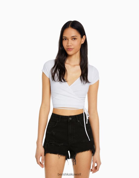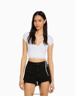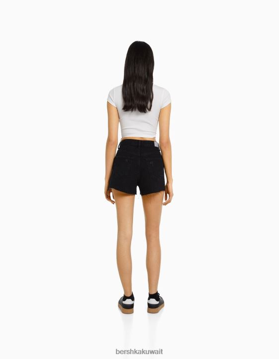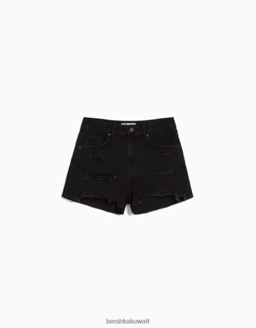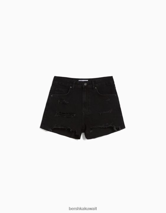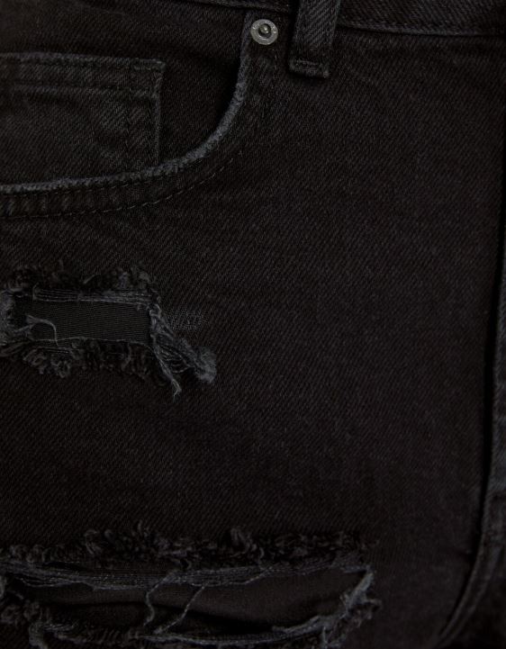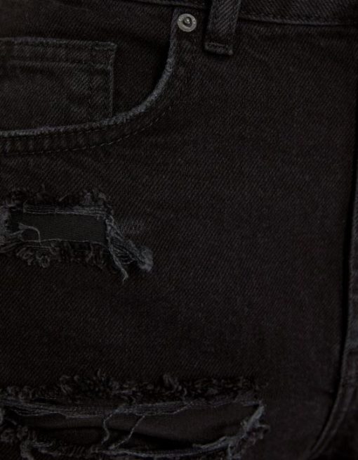 Bershka نحيف شورت جينز ممزق مع جيوب أسود 804X1682 ملابس