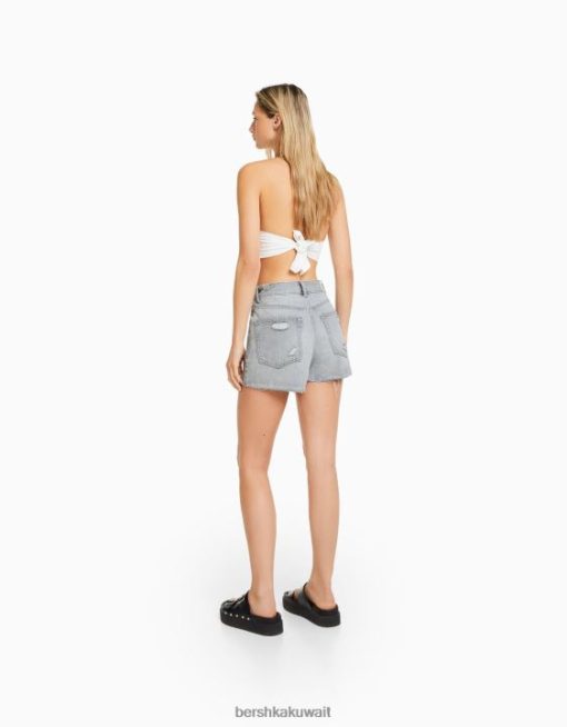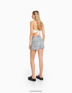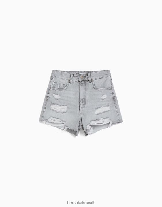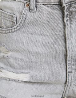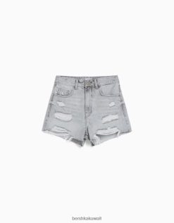 Bershka نحيف شورت جينز ممزق مع جيوب رمادي 804X1937 ملابس