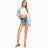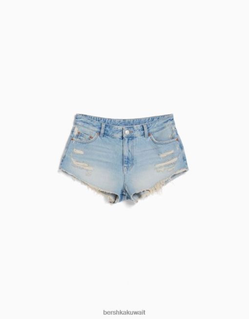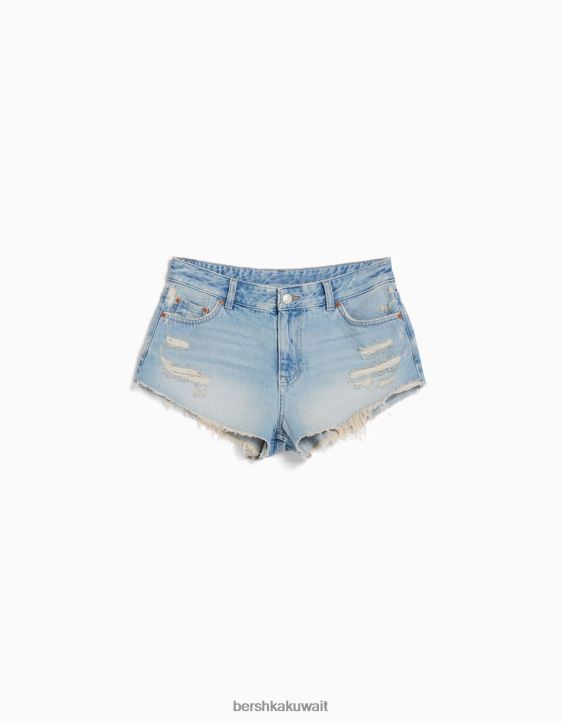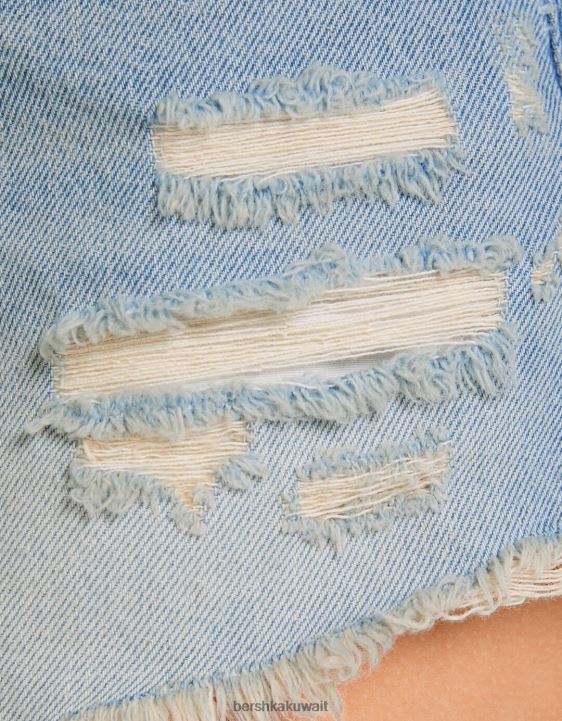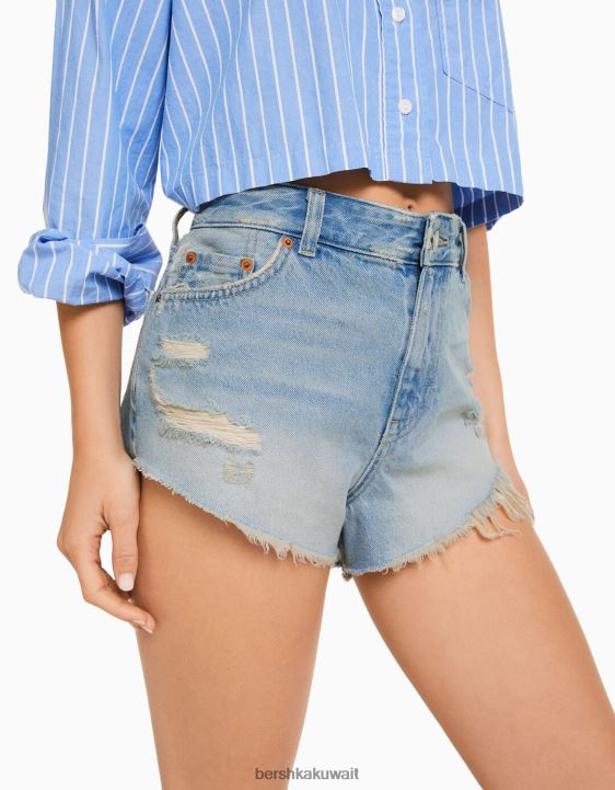 Bershka نحيف شورت دنيم عتيق مع ممزق مغسول باللون الأزرق 804X1707 ملابس