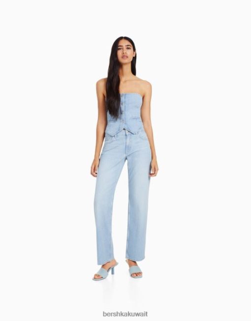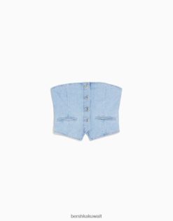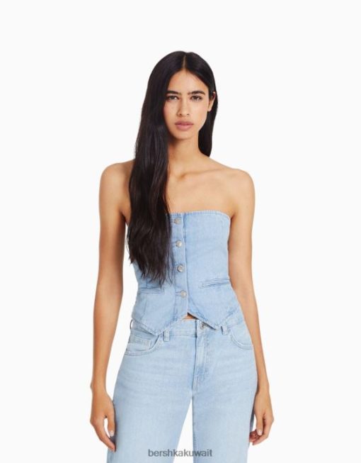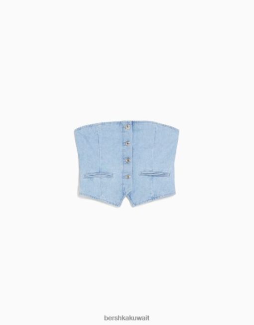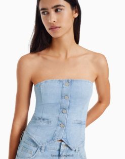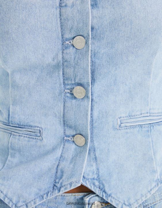 Bershka نحيف صدرية من الدنيم مع أكتاف وأزرار مكشوفة أزرق فاتح 804X1955 ملابس