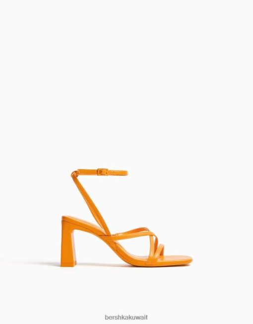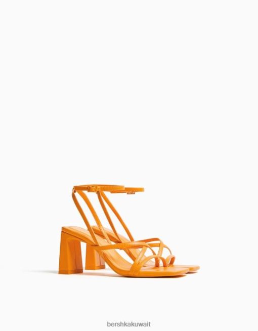 Bershka نحيف صندل بكعب عالي وحزام كاحل البرتقالي 804X2163 الأحذية