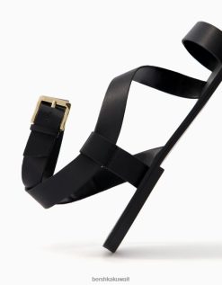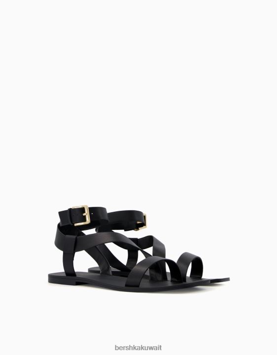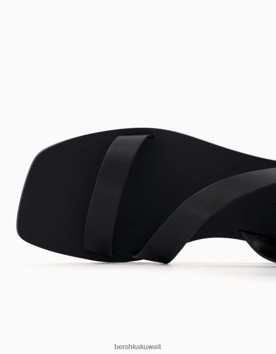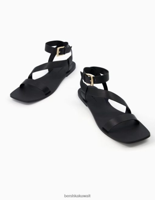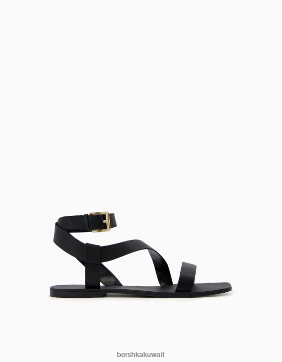 Bershka نحيف صندل مسطح بحزام كاحل أسود 804X2214 الأحذية
