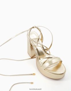 Bershka نحيف صندل معدني عالي الكعب مربوط ذهب 804X2337 الأحذية