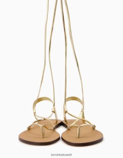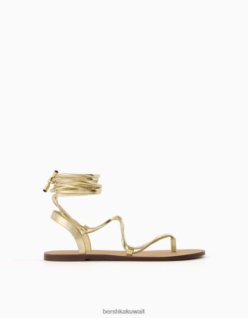 Bershka نحيف صندل منزلق معدني مسطح برباط ذهب 804X2241 الأحذية