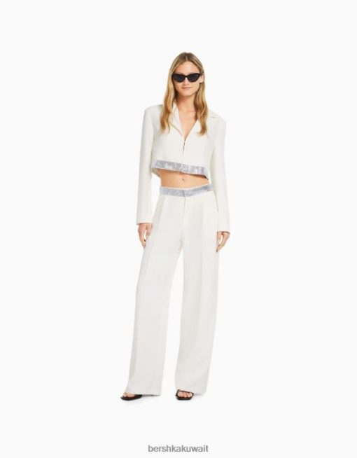 Bershka نحيف طقم السترة والسراويل المرصعة بالجواهر أبيض 804X2004 ملابس