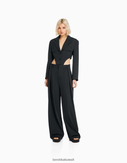 Bershka نحيف طقم بليزر وسروال مفصل الرمادي الداكن 804X2001 ملابس