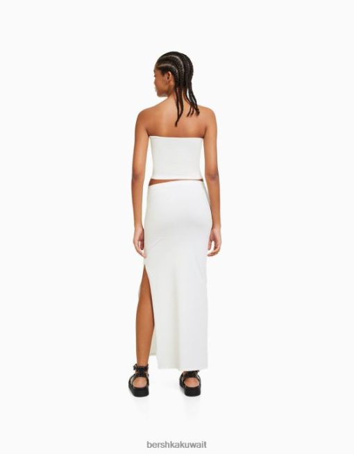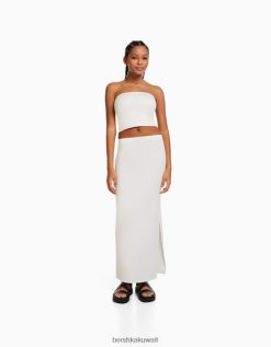 Bershka نحيف طقم تنورة طويلة ورباط علوي من البيض 804X2031 ملابس